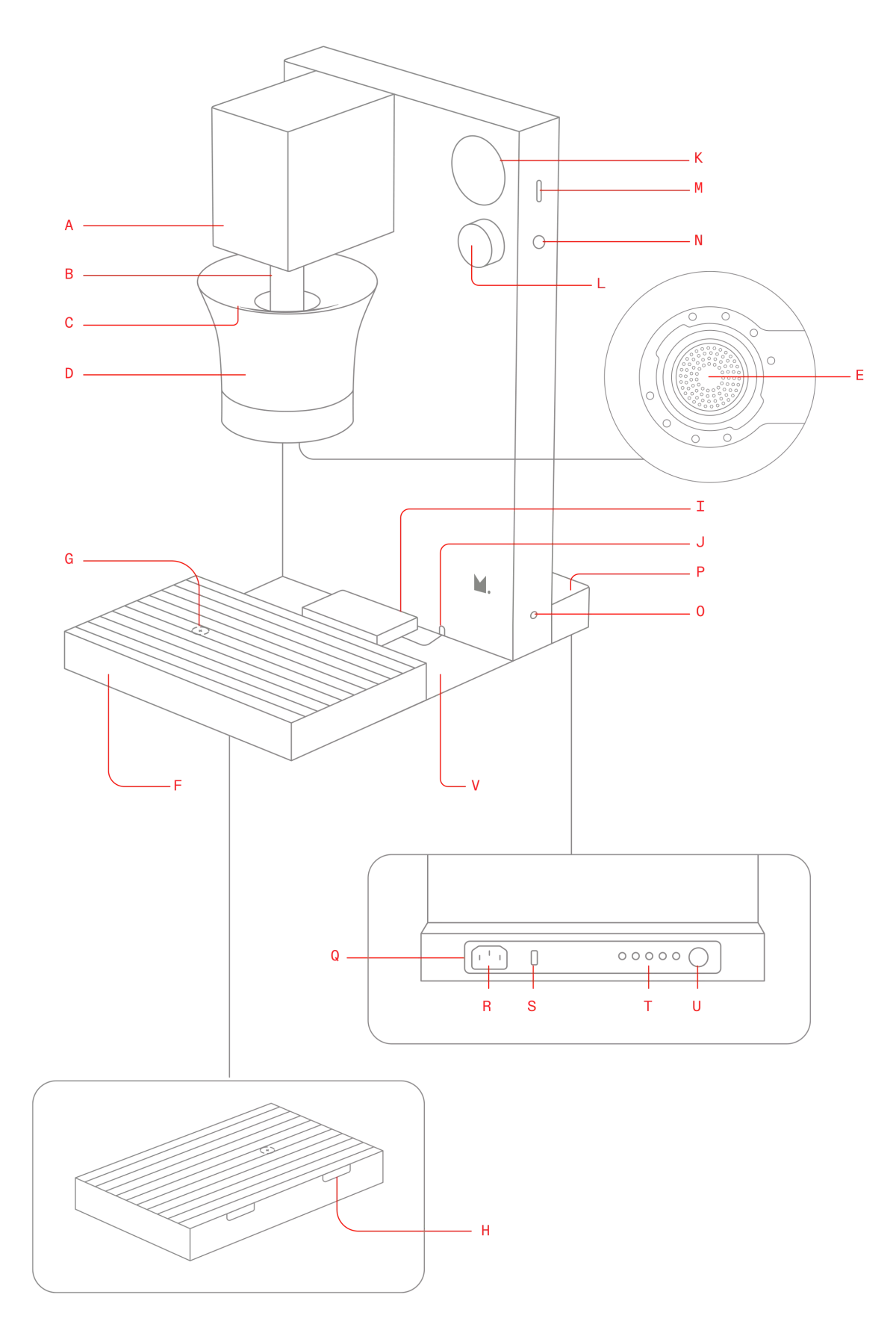 | G. | Repère d’alignement de la tasse |